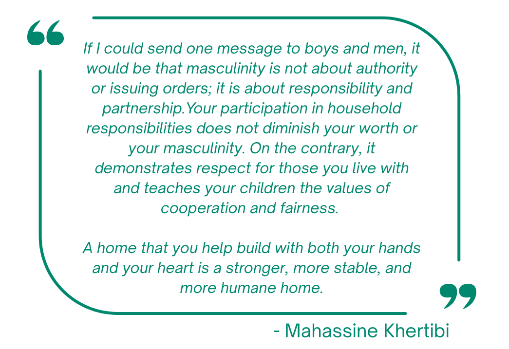 Across Morocco, women and girls continue to carry a disproportionate share of unpaid care and domestic work. This imbalance limits girls’ educational opportunities and women’s economic participation, while entrenching gender roles that confine care to women and girls and leave little room for alternative models of masculinity. Lasting gender equality cannot be achieved without addressing the everyday norms and expectations that sustain these inequalities.